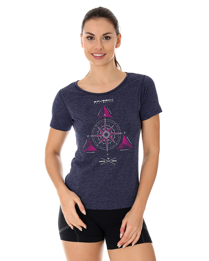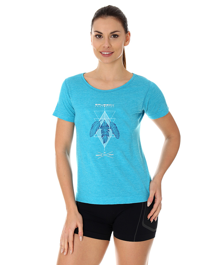 Wełniana koszulka damska krótki rękaw, BRUBECK® SS12720 OUTDOOR WOOL PRO